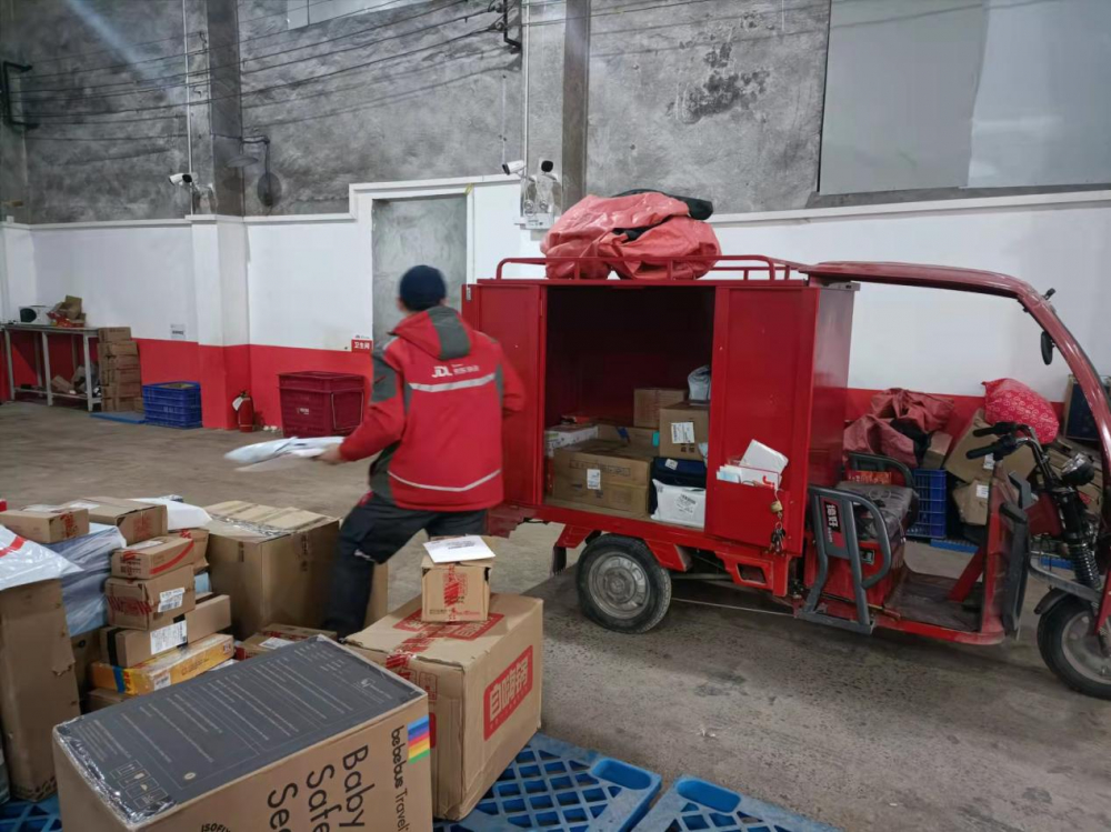 为了了解除夕夜的年货配送保障情况,大年三十下午,记者来到位于井口消防中队马路对面的京东物流站。虽然马路上已是冷冷清清——想必大家都回到家里与亲人团聚,但物流站里却仍旧是一派忙碌的景象。