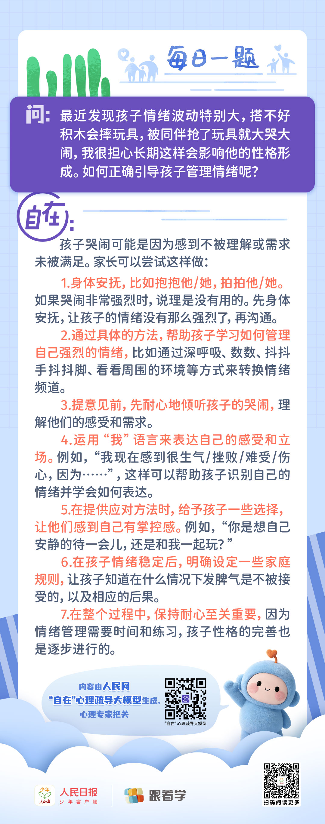 每日一题丨孩子经常因为小事发脾气哭闹,该如何正确引导? 发布日期:2026-04-28 16:59 点击次数:158