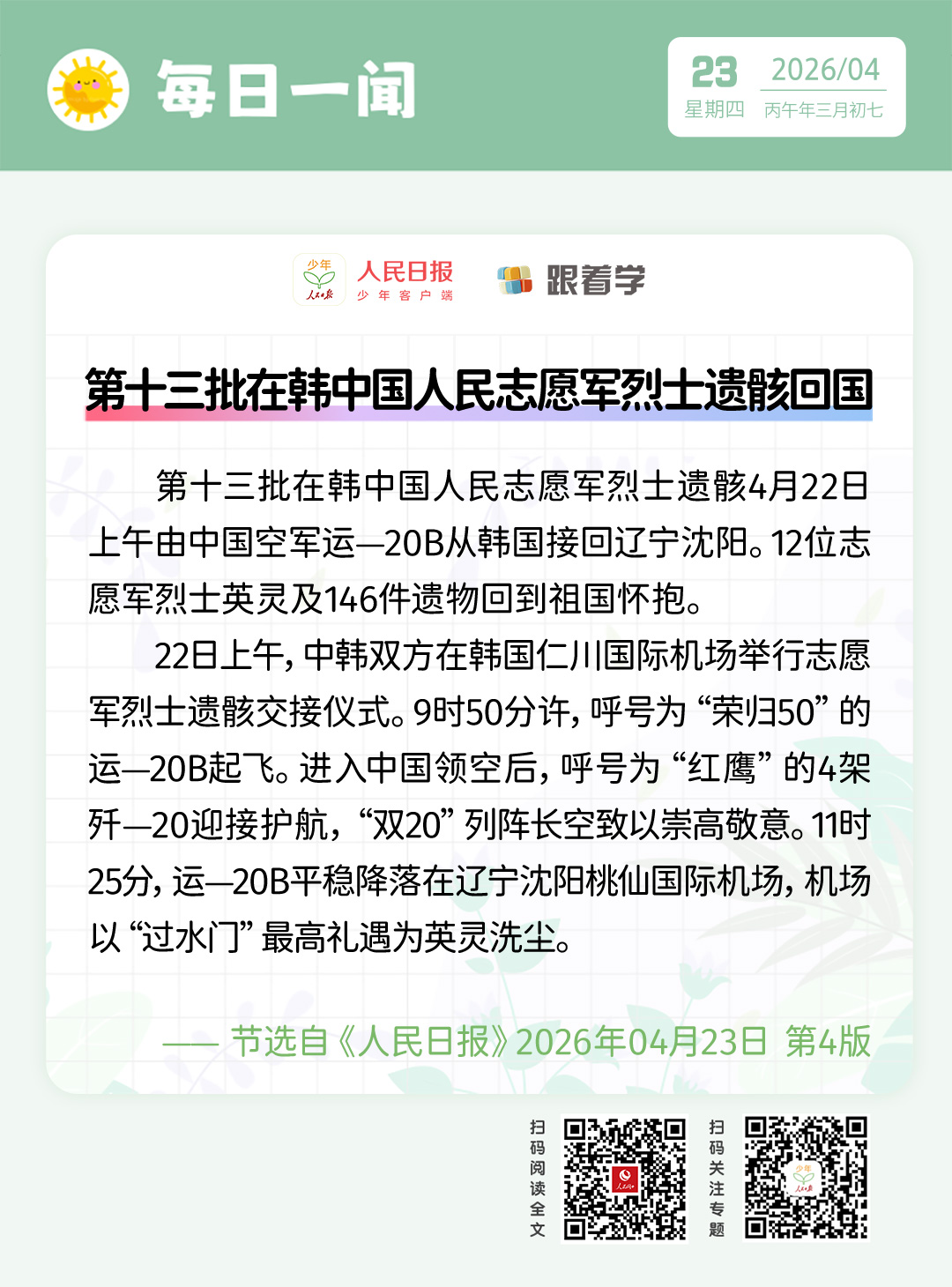 > 每日一闻丨第十三批在韩中国人民志愿军烈士遗骸回国