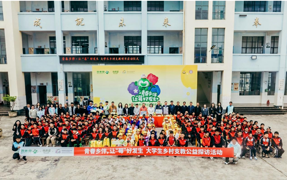 从2022年至今,百果园携手怡颗莓持续助力乡村教育,通过每售出一份浆果捐赠0.2元的公益形式,发起“让‘莓’好发生”项目爱心捐赠,支持134名高校青年前往云南省、甘肃省、广西壮族自治区等欠发达地区乡村学校进行支教工作。